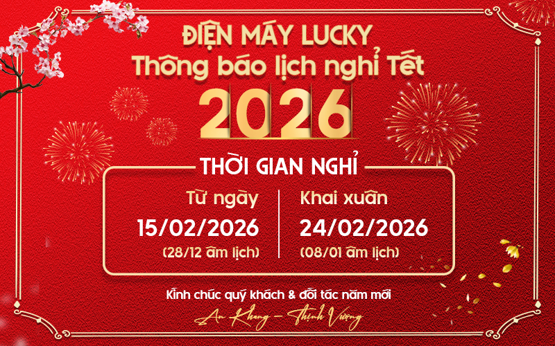 Để thuận tiện cho quý khách hàng và quý đối tác trong việc sắp xếp kế hoạch công việc và giao dịch, Điện máy Lucky xin thông báo lịch nghỉ Tết Nguyên Đán 2026 chính thức như sau: