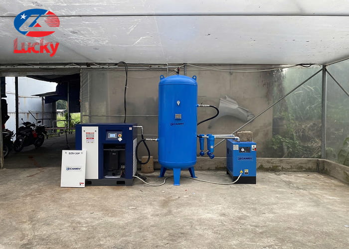 Gợi ý hệ thống thiết bị phù hợp với máy nén khí trục vít không dầu 10HP (7.5kW) biến tần Lucky Sun ZW-7.5